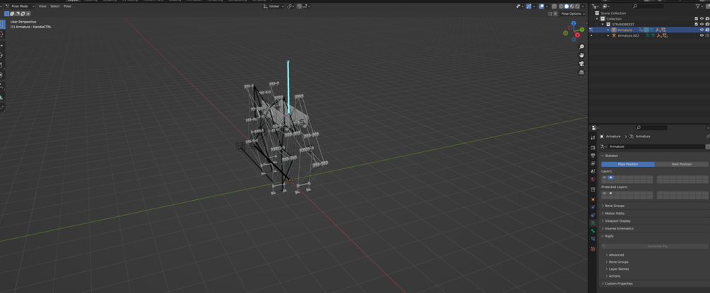 Once the STRANDBEEST collection is inside your file, you can see inside the STRANDBEEST collection there are 2 armatures. Ignore armature 2 (it's set to copy the 2 controls on armature 1).